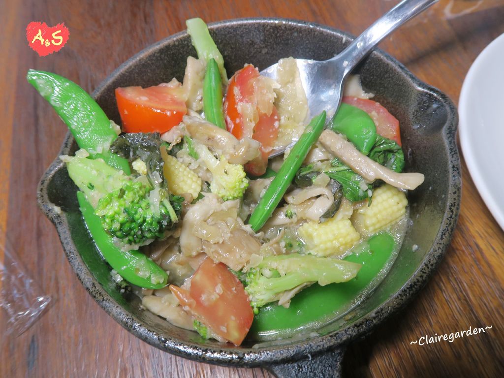 考慮了好久最後選擇了最清爽的蒜味橄欖油炒食蔬